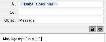 | Envoie d'un message crypté et signé (cliquer sur l'icône cadenas) | Réception d'un message crypté et signé |
