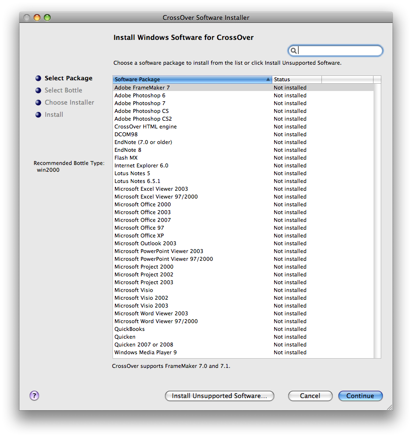 FrameMaker 7, Photoshop 6,7,CS, CS2, EndNote 7,8, Lotus Notes 5, 6.5.1, Office 2000, 2003, 2007, Visio 2000, 2003, Quicken 2007, 2008.