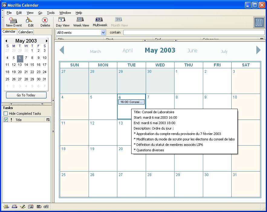 La même chose en utilisant Mozilla Calendar sous Windows XP (Merci Lionel).